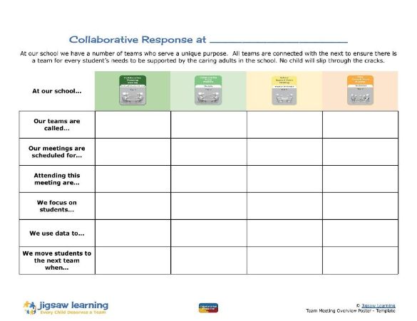 In schools, the following four general structures should be considered when creating a highly-functioning Collaborative Response.