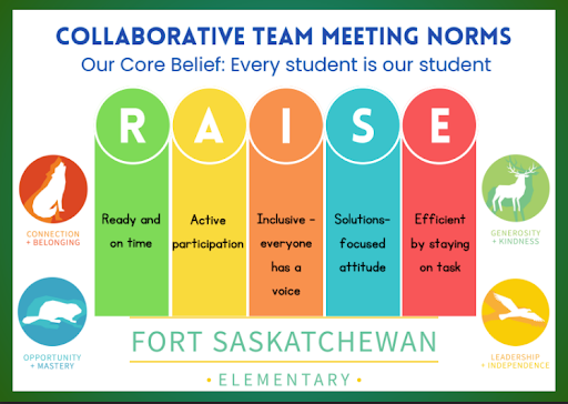 The walls of your collaborative space should serve as constant reminders of your collective mission. Start by prominently displaying your team’s meeting norms to make it easier for facilitators to redirect the process. You should also post anchor resources such as the school’s core improvement goals, visual guides to meeting structures, and continuums of support. To keep the work grounded in evidence, keep a shelf stocked with key books and research articles related to your current initiatives so that teams can easily reference them during discussions.