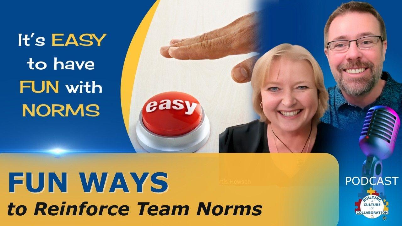 | Fun Ways to Reinforce Team Norms - Ep 79 Kurtis and Lorna share some ideas to consider when wanting to bring some fun to your team norms. Many of the ideas shared are about ensuring high impact collaboration, while allowing opportunities for your team to have a little fun along the way! |