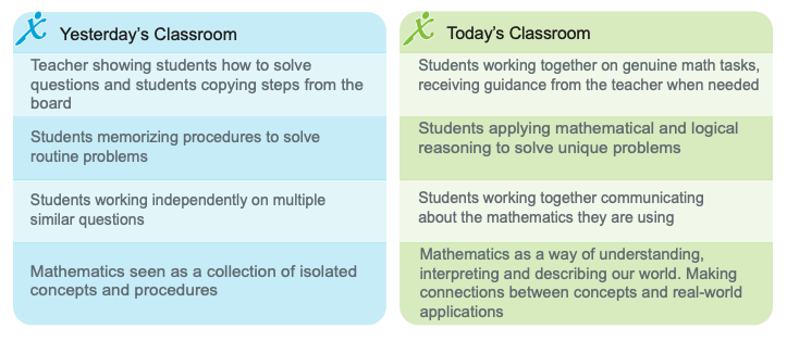 While the fundamentals of mathematics have not changed, we have a broader understanding of how to enhance mathematics instruction in support of the idea that “math is for everyone”: we are striving for a numerate (mathematically literate) society. This learning is a progression, with the expectation that what the average student can do at a particular age means that some can do more and some can do less. As teachers we are charged with ensuring students are the most accurate and efficient problem solvers that they can be with the knowledge that they have at that particular time. We know that the mathematics classroom is not the same as when parents were learning, or even perhaps when we were students.