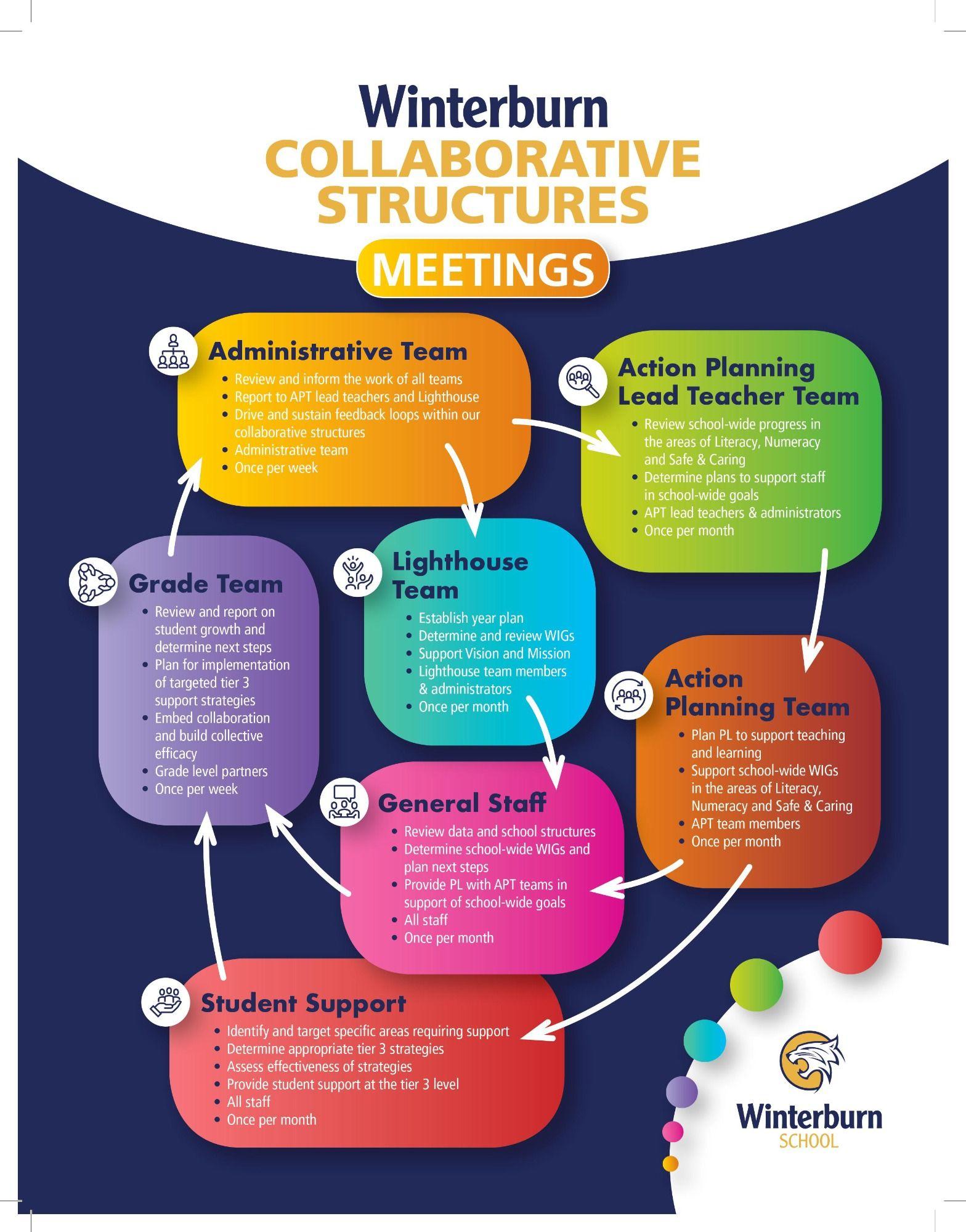 | Collaborative Structures Poster - Winterburn - Visual poster developed at Winterburn School to document the layers to collaborative structures in the school and their interconnectedness. |