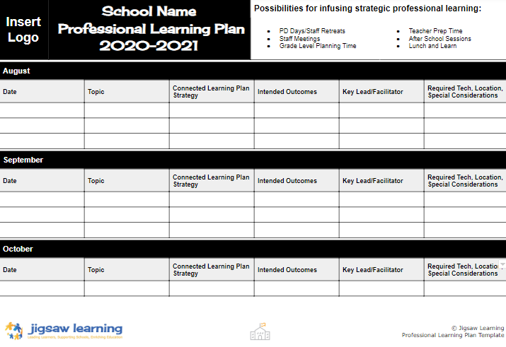 | Professional Learning Plan Template - This comprehensive template will support the principal in creating a yearly professional learning plan for their staff. |