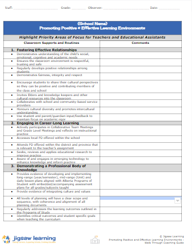 | Promoting Positive and Effective Learning Environments - Walk Through Coaching Guide |