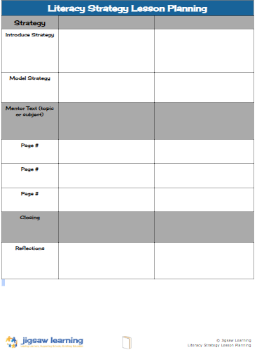 | Literacy Strategy Lesson Planning - Determine a literacy strategy beneficial to your students and pick a mentor text well suited for modelling this strategy. Choose the pages you will be stopping at and detail how you will be modelling the strategy from particular excerpts from the text. |