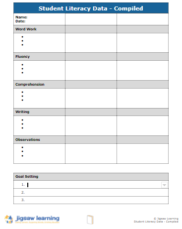 | Literacy Data - Classroom Profile Template - When you take the time to bring all of your literacy data together for analysis use this practical tool for a visual representation of which students would benefit from particular areas of instruction. This template can be used for the process of going from assessment to instruction as detailed in the blog post I've Assessed, now what? Teachers: Detectives of Assessment. Feel free to change the headings to best suit your context. |