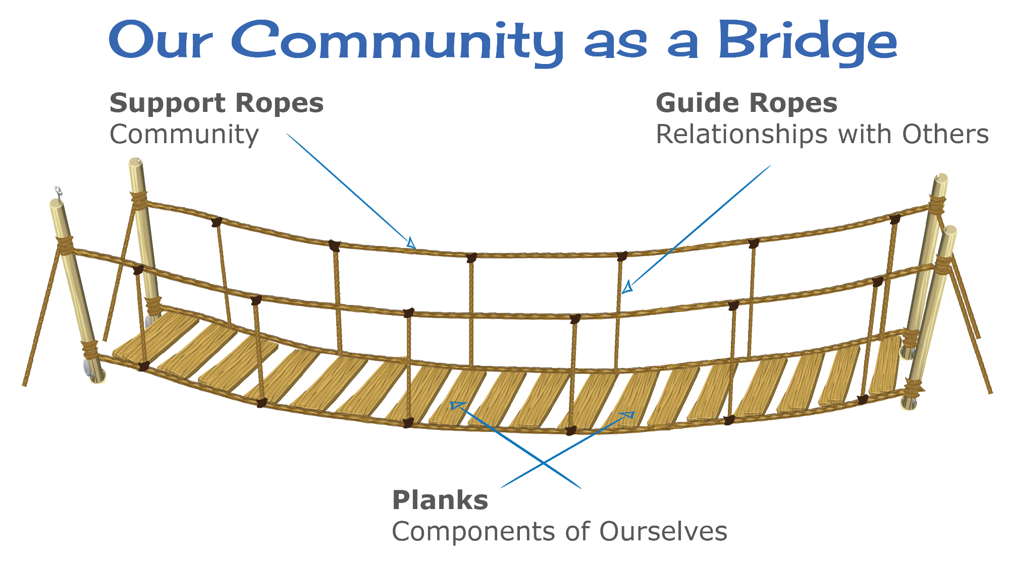 | Navigating the Bridge: A Framework for Creating Community - this blog describes a framework in which components of self exist within a community and shares the idea that when parts of ourselves are not in balance, we can support one another. |
