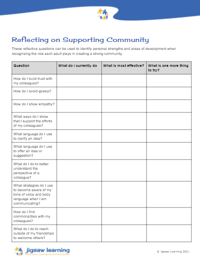 | Strengthening the Guide Ropes with Colleagues - These reflective questions can be used to identify personal strengths and areas of development when recognizing the role each adult plays in creating a strong community. |