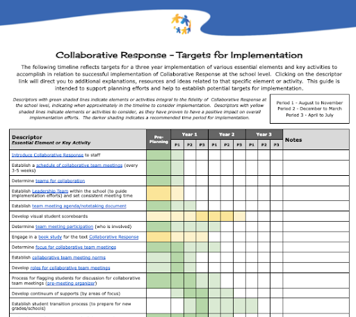 When introducing, deepening, or sustaining Collaborative Response, thoughtful consideration in regards to timing is required to ensure we meet the targets of implementation.