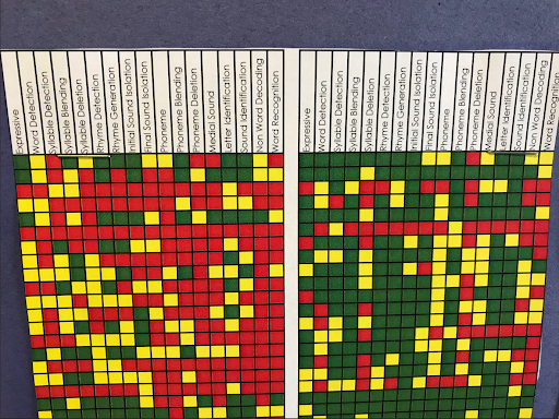 In this sample from Oscar Adolphson Primary from Valleyview, Alberta, the principal removed student names and student scores and simply from the color coding alone, this display from her office bulletin board shows the significant growth that occurred for this school within their literacy intervention, a reason for great celebration.